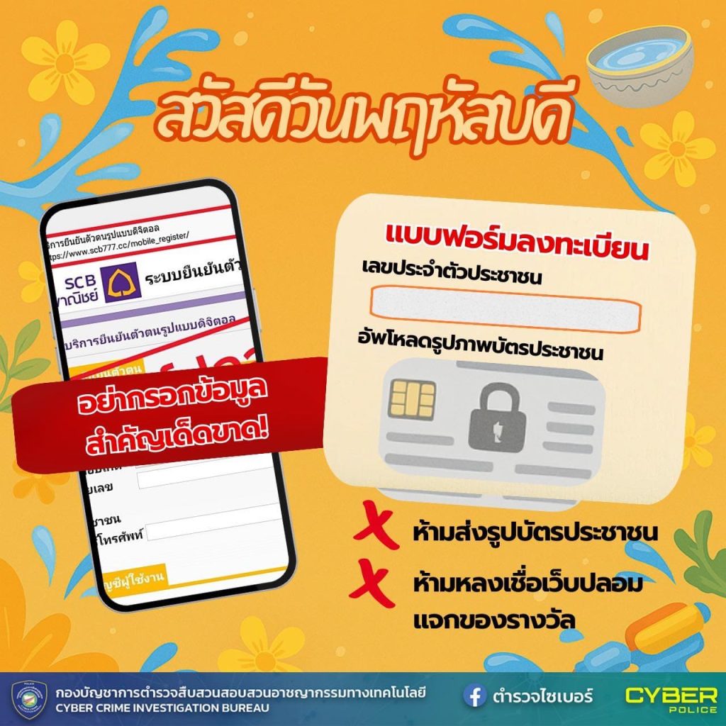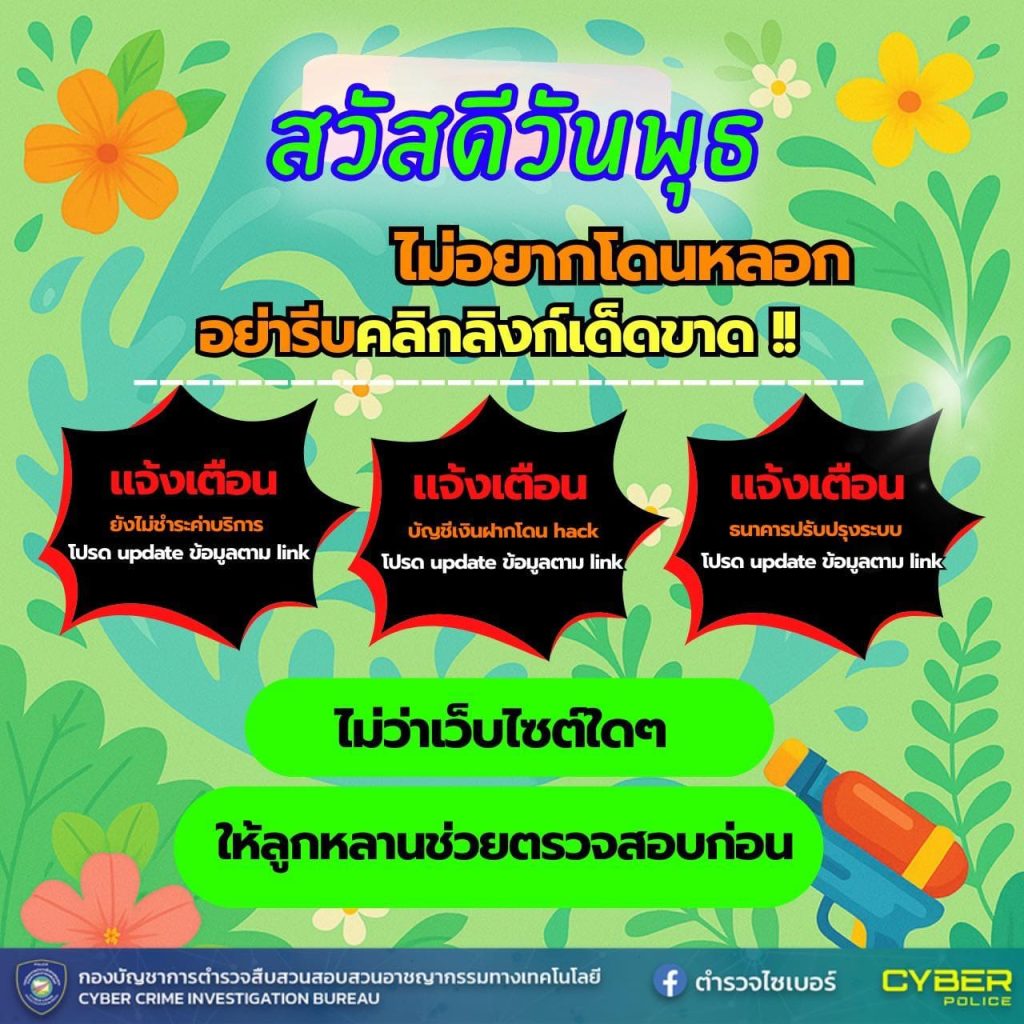 ตำรวจไซเบอร์แจกฟรี!! ภาพสวัสดีตอนเช้า เตือนภัยออนไลน์ V.12 ในดครงการ สวัสดีลดภัยไซเบอร์ 28 เมษายน 2025 โดย admdom / รู้ทันไซเบอร์ ( Cyber ) ภาพสวัสดีตอนเช้า เตือนภัยออนไลน์ V.12 ในโครงการ “สวัสดี ลดภัยไซเบอร์” เพื่อให้พี่น้องประชาชนมีภูมิคุ้มกันภัยออนไลน์ ลดความเสี่ยงจากการถูกหลอกลวง ด้วยข้อมูลที่เข้าถึงง่ายและน่าจดจำ การป้องกันภัยไซเบอร์จะสำเร็จได้ ต้องอาศัยความร่วมมือจากประชาชนในการช่วยกันแชร์ข้อมูลที่เป็นประโยชน์ เพื่อให้ทุกคนได้เรียนรู้และระมัดระวังภัยไซเบอร์ในทุกรูปแบบ