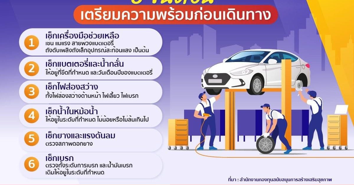 วันหยุดเทศกาลที่รอคอยมาถึงแล้ว หลายครอบครัวมีแผนออกเดินทางท่องเที่ยว แต่จะให้สนุกและปลอดภัยจึงต้องเตรียมตัวให้พร้อมก่อนเดินทาง เมื่อเดินทางไกลจึงควรพักผ่อนให้เพียงพอ ระหว่างทางให้จอดพักเมื่อรู้สึกเมื่อยล้า หรือสลับกันขับรถกับเพื่อน หาอาหารว่างเบา ๆ หรือผลไม้เปรี้ยว ๆ ติดรถไว้ รวมถึงสิ่งที่ขาดไม่ได้ในช่วงนี้ก็คือหน้ากากอนามัย และเจลล้างมือเช่นเดิม