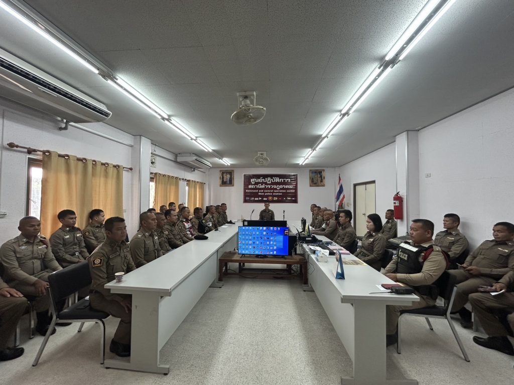 ภาพหัวหหัวหน้าสถานีตำรวจชี้แจงและให้ข้อมูลเกี่ยวกับการประเมิน