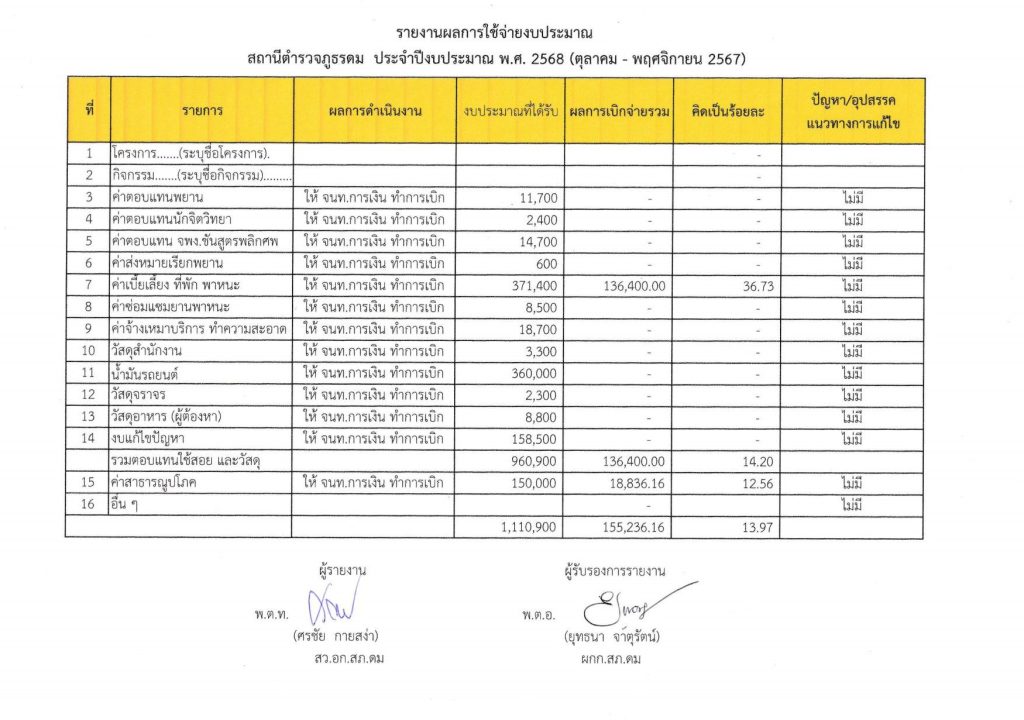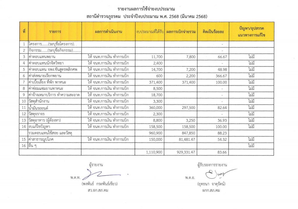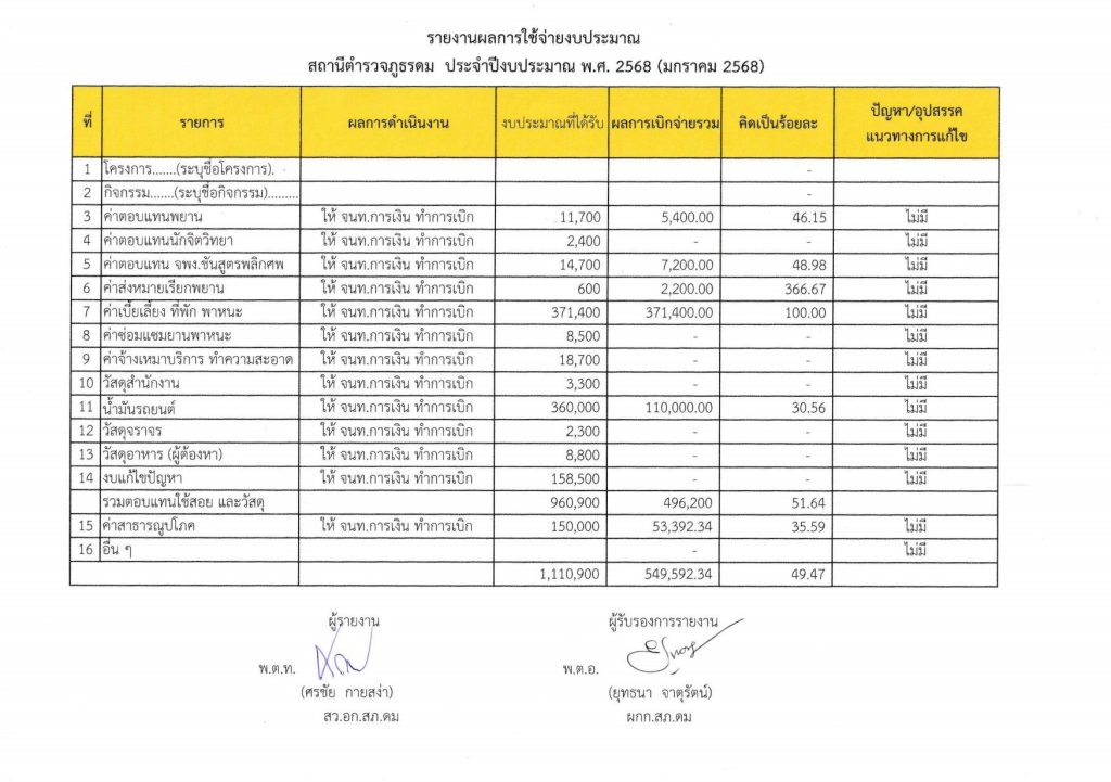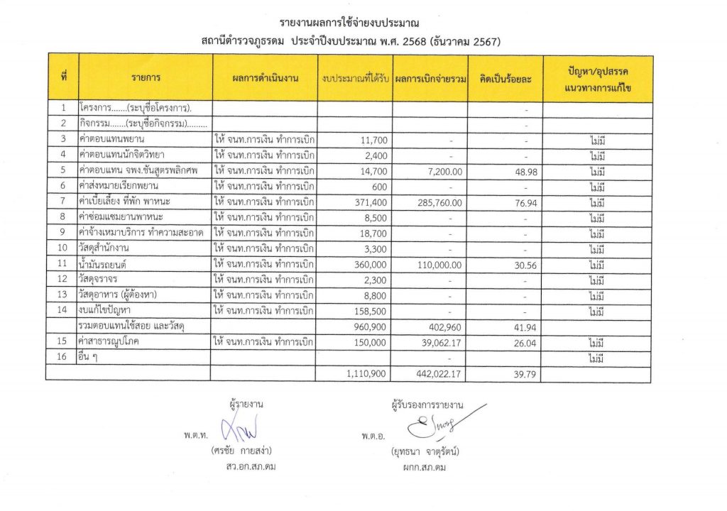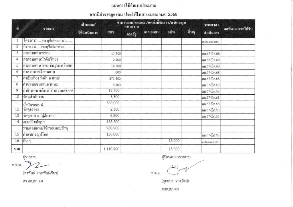 แผนการใช้จ่ายงบประมาณของสถานีตำรวจภูธรดมประจำปีงบประมาณ พ.ศ. 2568