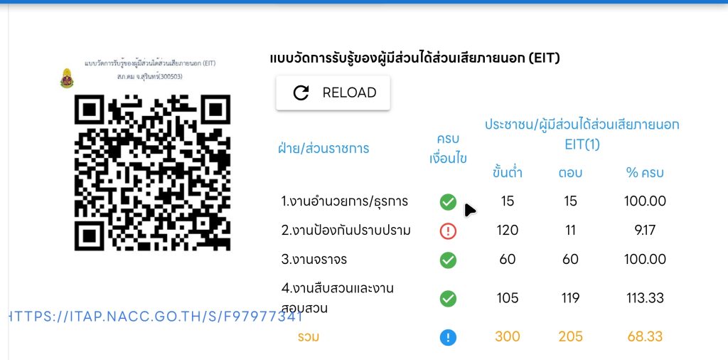 ประชาสัมพันธ์ แบบวัด EIT ของหน่วยงาน แสดงไว้หน้าหลักของเว็บไซต์